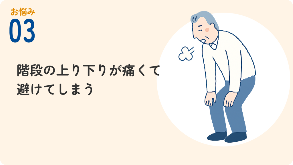 股関節の可動域や筋力が改善することで、「歩く」「立つ」「座る」といった日常動作がスムーズに。 買い物、旅行、趣味など、これまであきらめていたことにも前向きに取り組めるようになります。