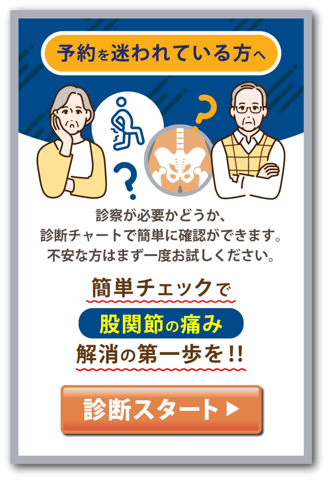 股関節疾患の治療法には、大きく分けて「保存療法」と「手術療法」があります。症状の程度や日常生活への影響に応じて、最適な治療法を選ぶことが大切です。
