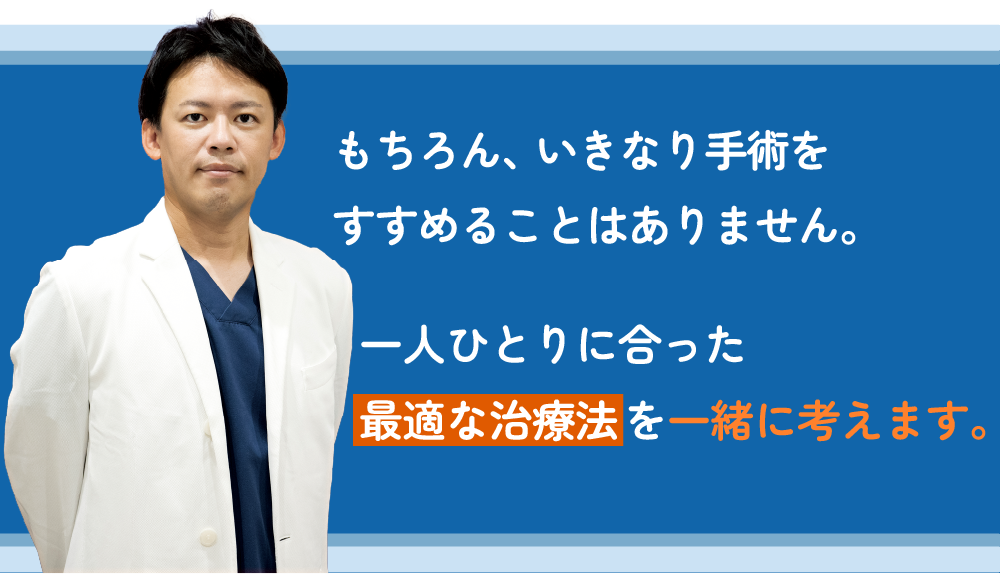 当院では、手術が必要なケース・不要なケースの見極めを丁寧に行い、保存療法を含めた複数の選択肢をご提案いたします。